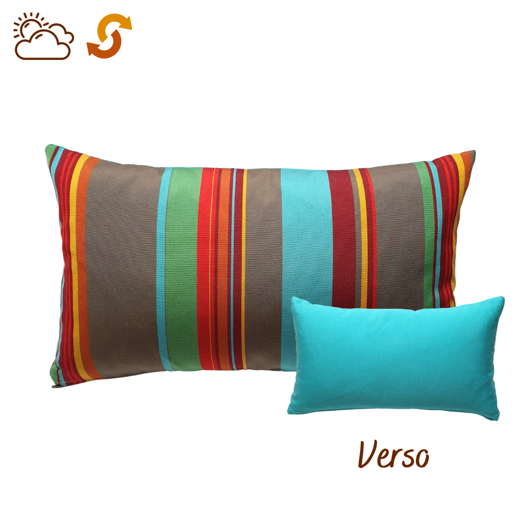 Housse de coussin extérieur, déhoussable par fermeture à glissière, tissu déperlant.
